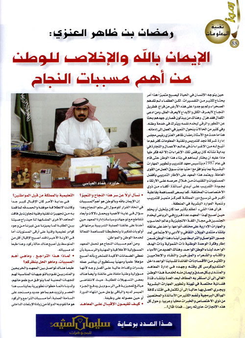 الحوار الذي اجرته مجلة رموز مع الاستاذ رمضان العنزي مدير عام شركة نجد للتدريب و تقنية المعلومات